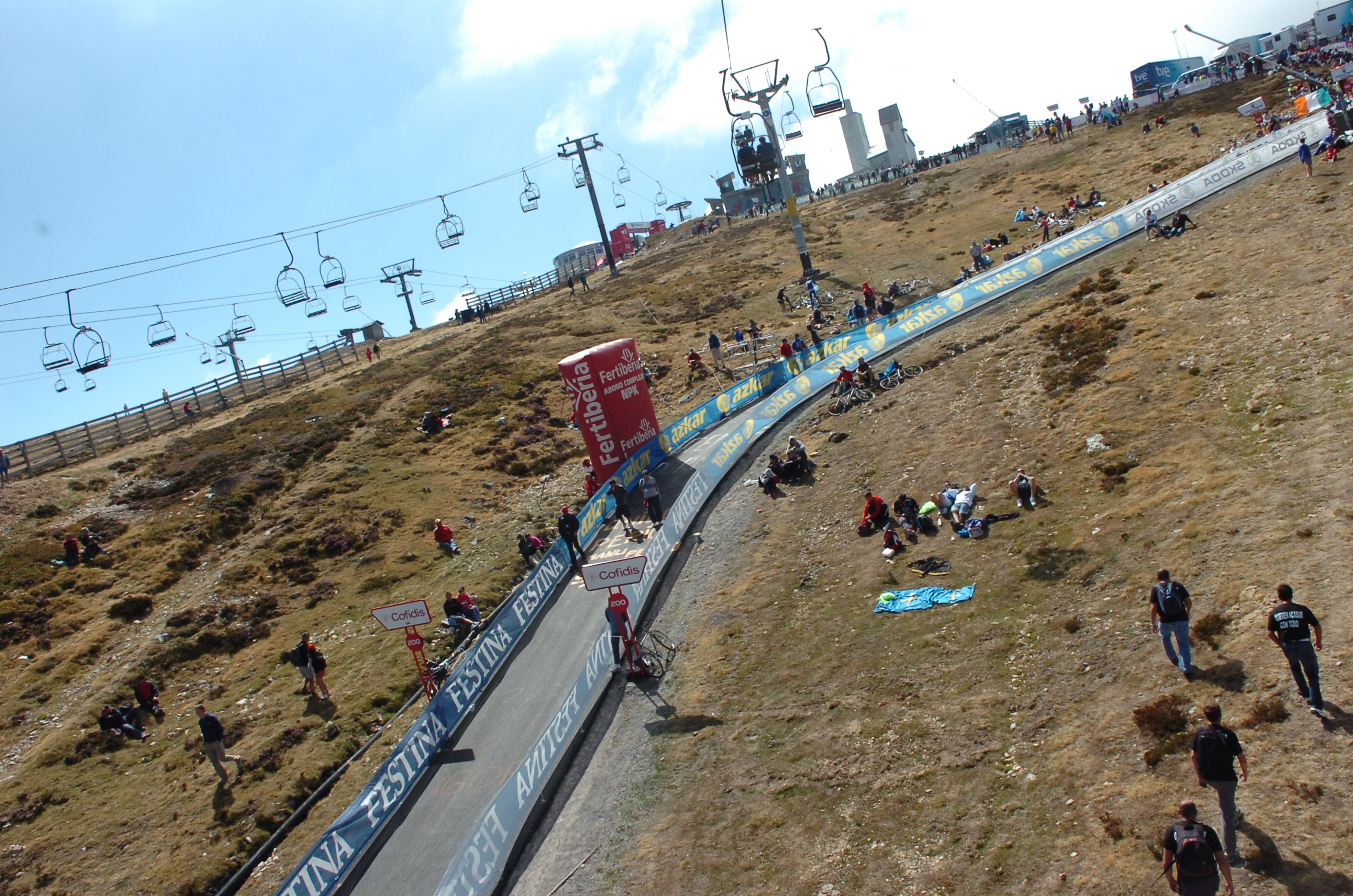Puede que el primer caso, o al menos uno de los más notorios, sea Cuitu Negru, la prolongación hasta la parte alta de la estación de esquí de Brañillin, empleada tras la ascensión a Pajares. Lo hemos visto en la pasada Vuelta a España; esos tres kilómetros finales, con puntas superiores al 20%, sirven para ver la agonía máxima de los ciclistas en esas rampas. Como hemos comentado, el camino ya existía para que los vehículos de mantenimiento pudieran subir hasta las instalaciones donde ya accedía el público en telesilla, pues en invierno la carretera está cubierta de nieve. Es una inversión inteligente para mantener el interés fuera de la época invernal.