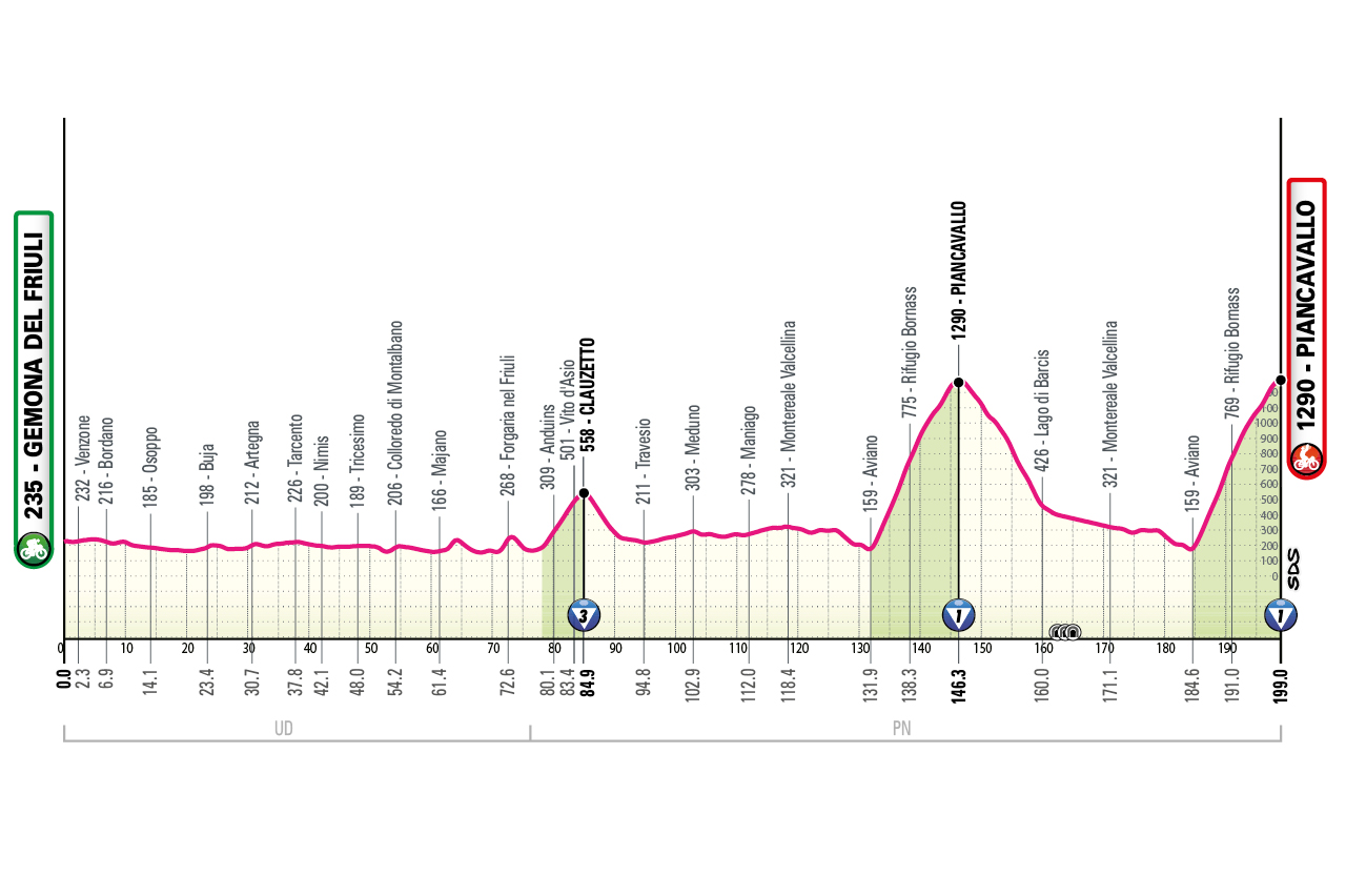 Aún quedara la etapa de Piancavallo, con dos pasos por la cima si bien muy separados entre sí, antes de la etapa final en Roma.