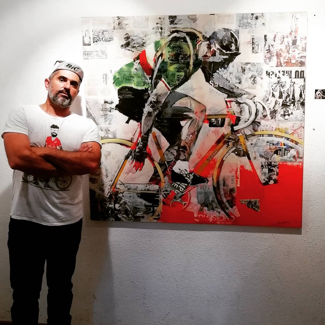 A la vista está que nuestro deporte es un espectáculo visual lleno de plasticidad y colorido, características que pocos han sabido transmitir tan bien como nuestro entrevistado. Exciclista profesional, cambió la bici por la pintura aunque no del todo pues el ciclismo sigue siendo el tema principal de su obra que cada vez está adquiriendo más renombre.