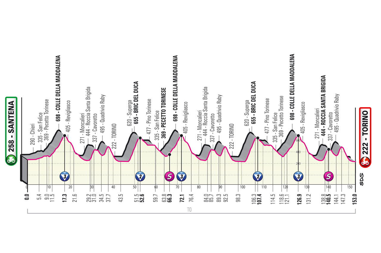 El descanso vendrá seguido de una etapa llana antes de dar paso a la media montaña. En Génova, con un puerto de primera a 20 kms de meta, en Cuneo (con los puertos muy lejos de meta) y sobre todo en Turín, con un recorrido en torno a Superga con hasta 11 ascensiones de todo tipo y condición donde las persecuciones serán muy difíciles.