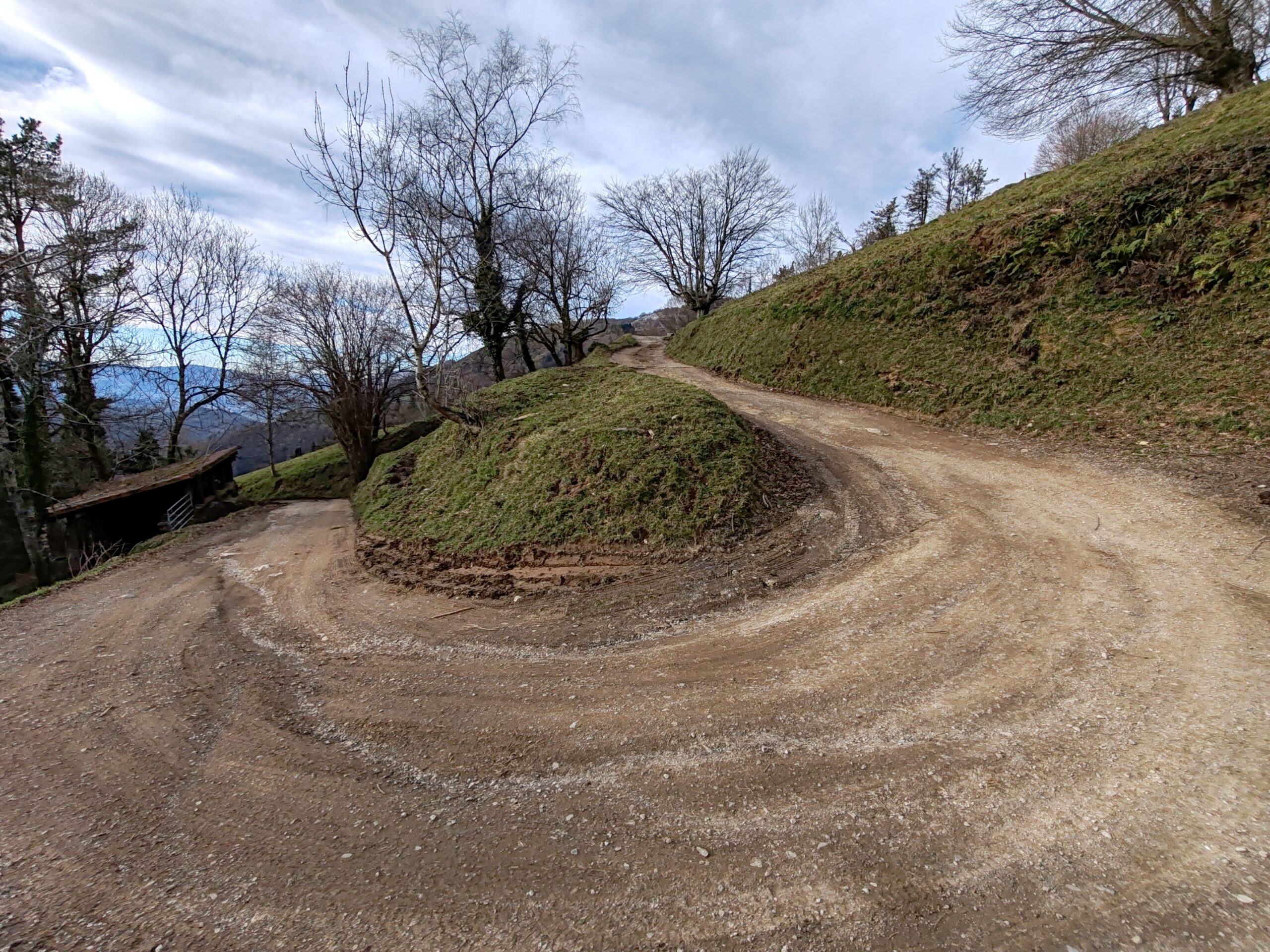 La carretera pasa a ser muy estrecha, pero el asfalto sigue en muy buen estado. Sin embargo, raramente la pendiente baja del 10 %, incluso con puntas del 20 %. Las horquillas son una tortura, pues el giro nos pone delante de una pared; los prados laterales son muy verticales, acentuando la pendiente.